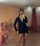 Abito in lurex laminato con scollo V e arricciatura regolabile nella parte avanti della gonna.