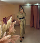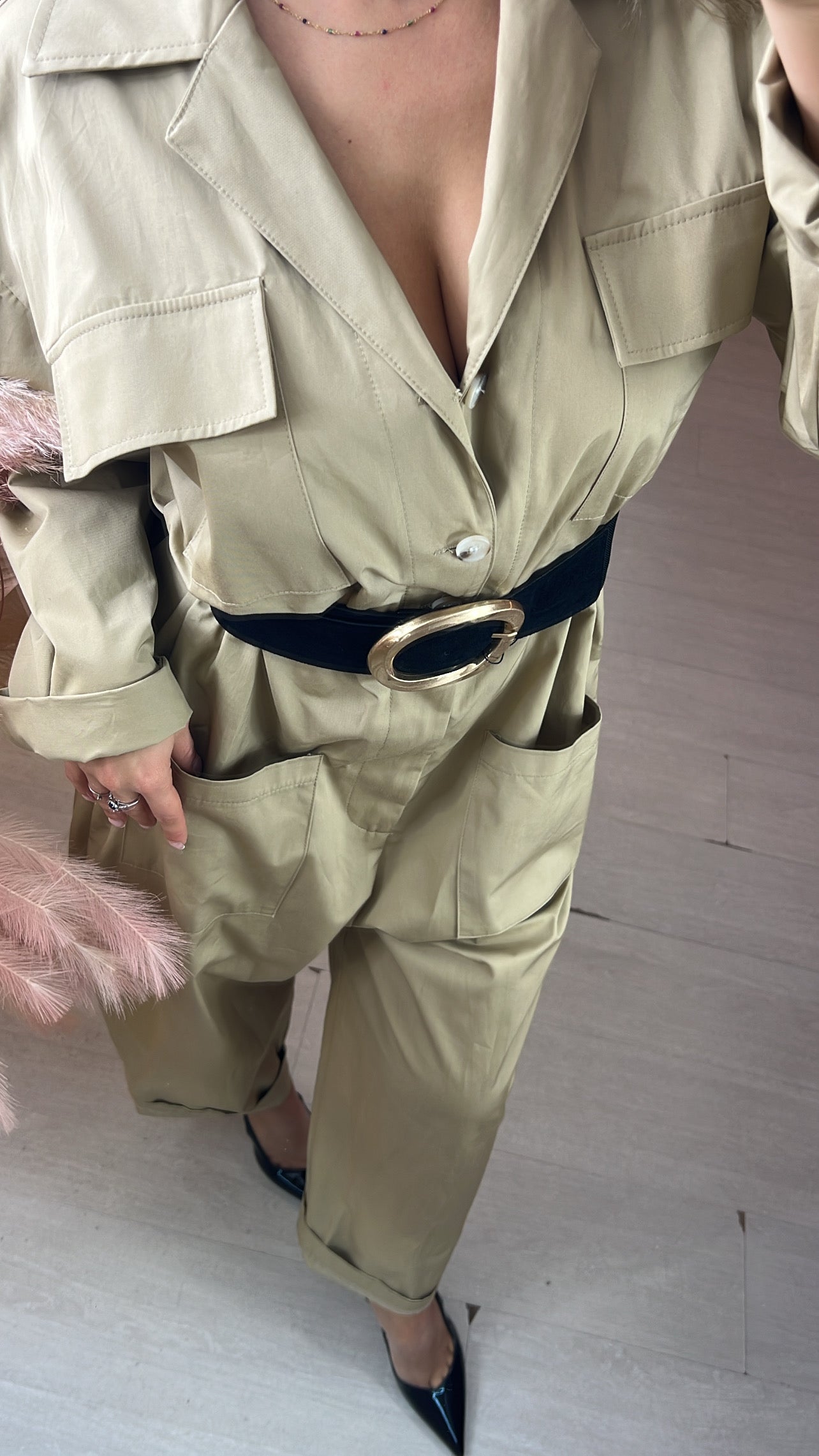 Tuta intera dal taglio oversize con colletto camicia e bottoni nella parte frontale superiore