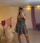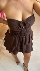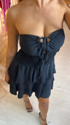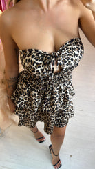 Mini abito scollo a fascia con coppe e dettaglio fiocchetto, gonna morbida con balze