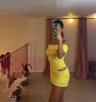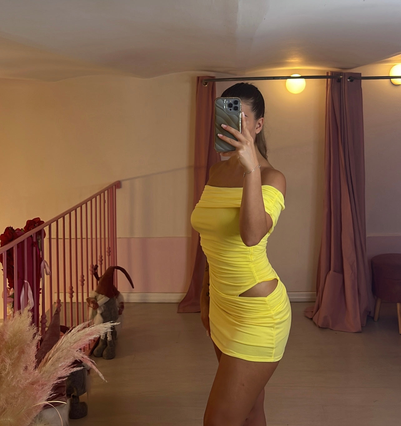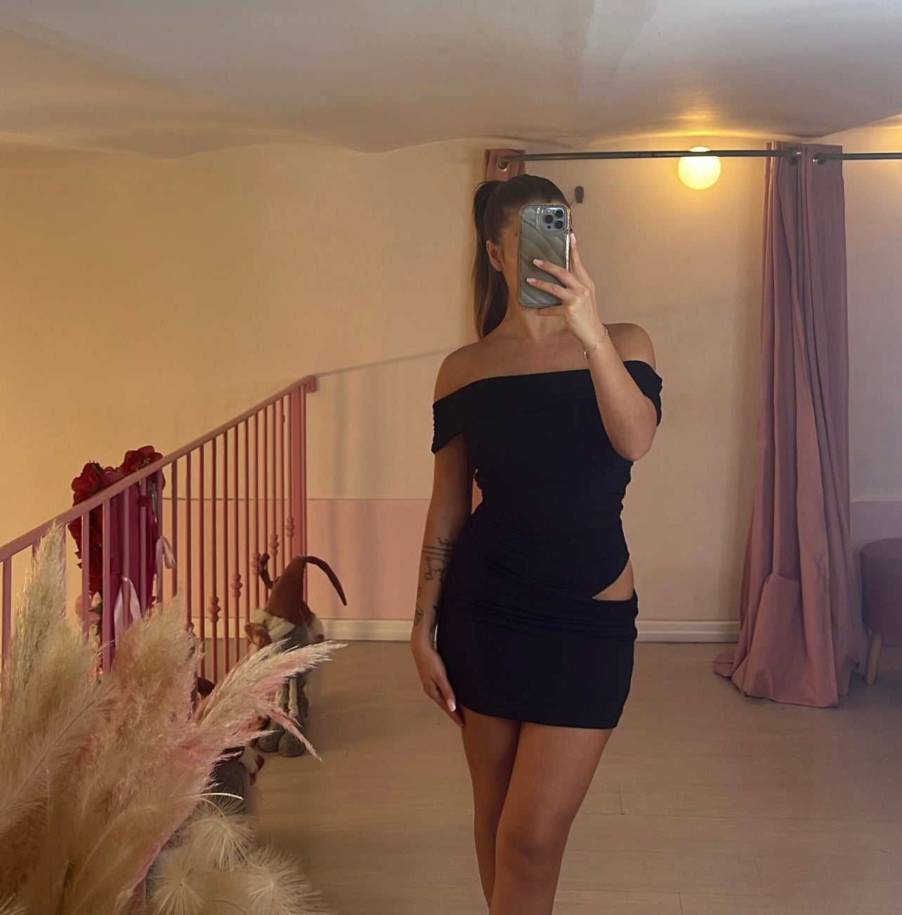 Mini abito con scollo a barca dettaglio spacco cut out fianco