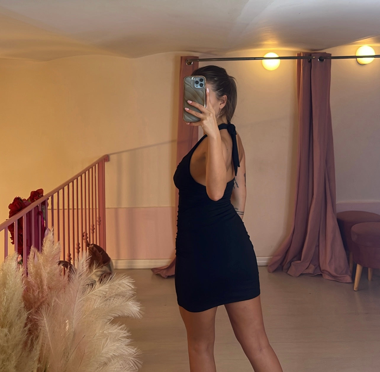 Mini abito tubino con laccio girocollo e dettaglio scollatura con ferretto anteriore