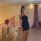Mini abito tubino con effetto shiny con scollatura posteriore e bretelle a incrocio