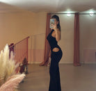 Tuta intera con top smanicato e pantalone a zampa dettaglio spacco cut out fianco