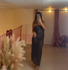 Bikini set formato dalla fascia gioiello conchiglia e bikini a brasiliana motivo pois + gonna utilizzabile anche come vestito con trasparenze