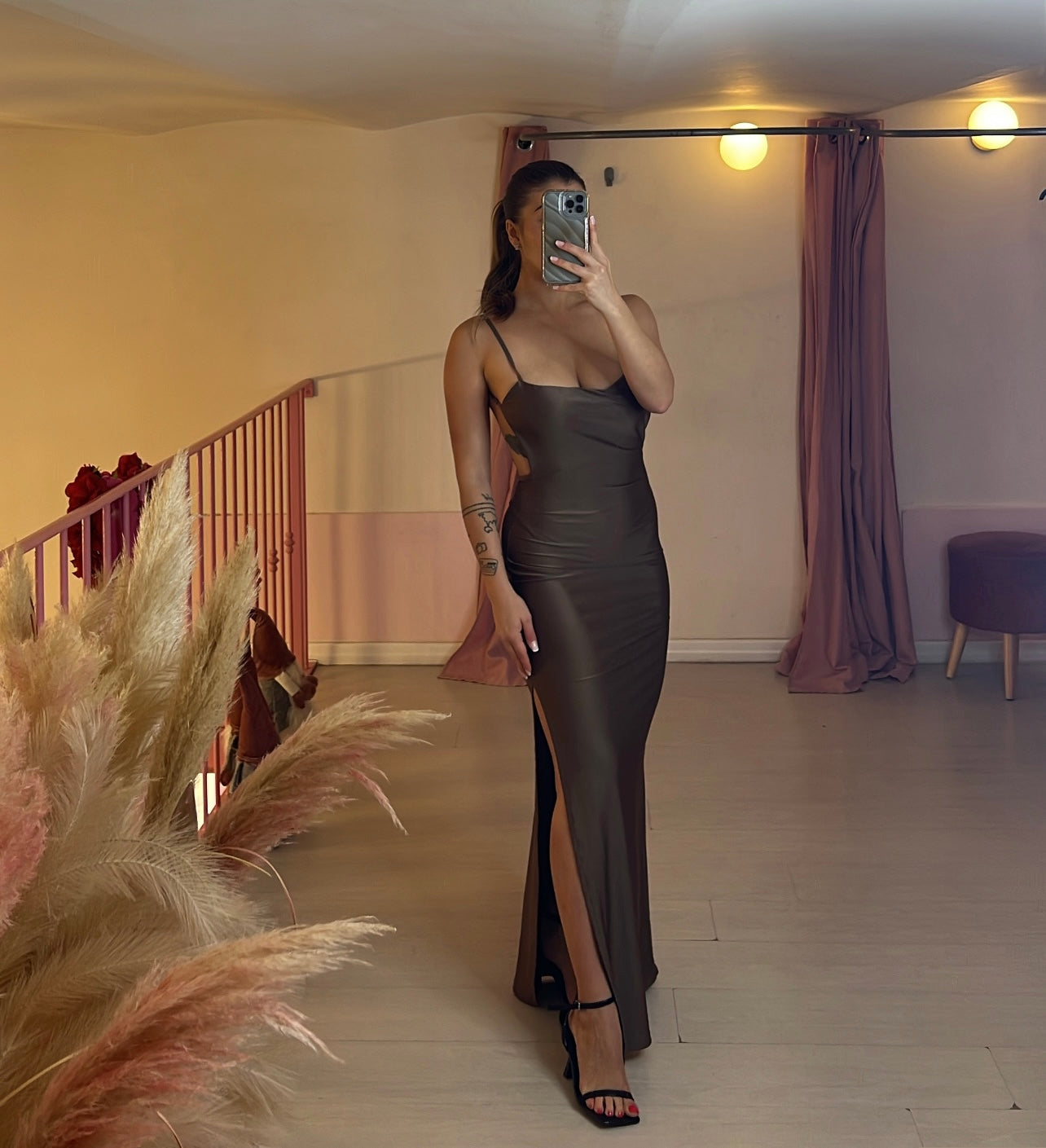 Abito laminato con spacco laterale
