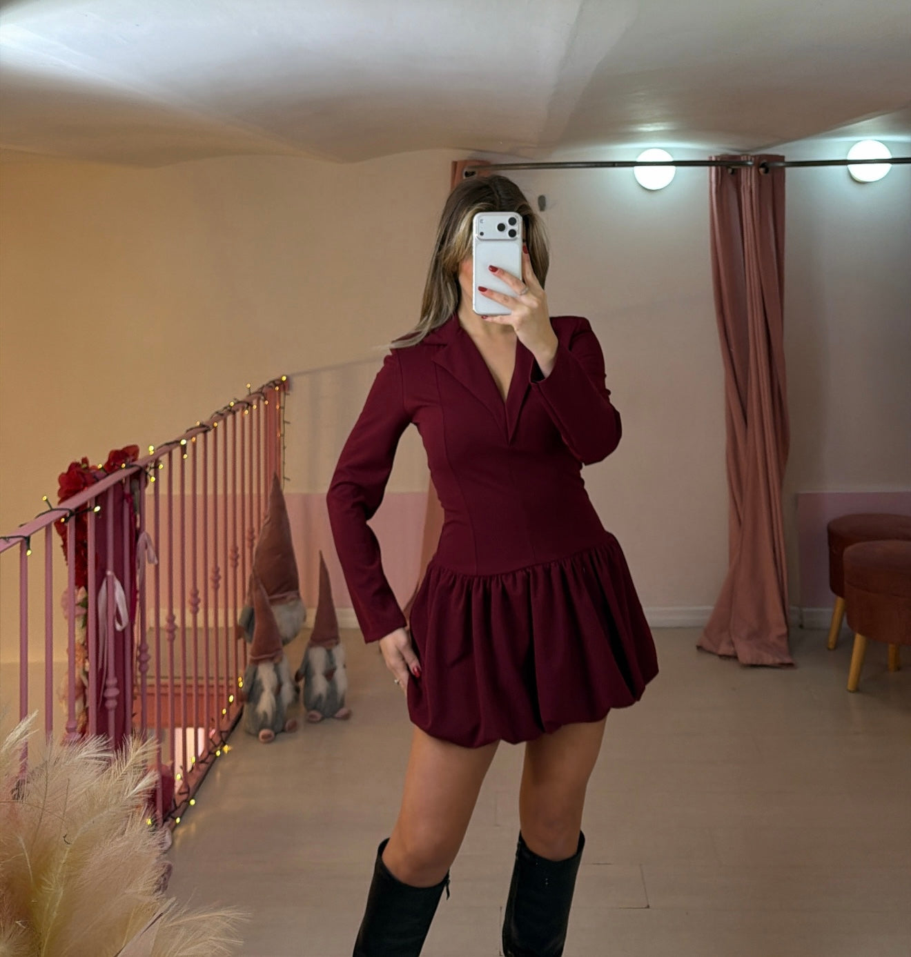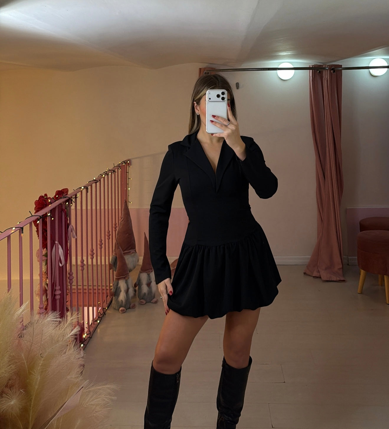 Abito versatile con gonna a palloncino e modello giacca con colletto revers nella parte di sopra