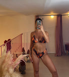 Bikini effetto sfumato con triangolo e slip brasiliana con mini gonna