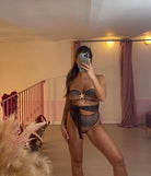 Costume intero con fascia in vita in toulle, dettaglio gioiello stella marina e in aggiunta gonna lunga copricostume.