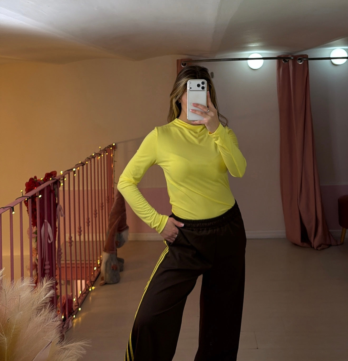 Maglia gialla in microfibra, taglia unica veste fino alla L.