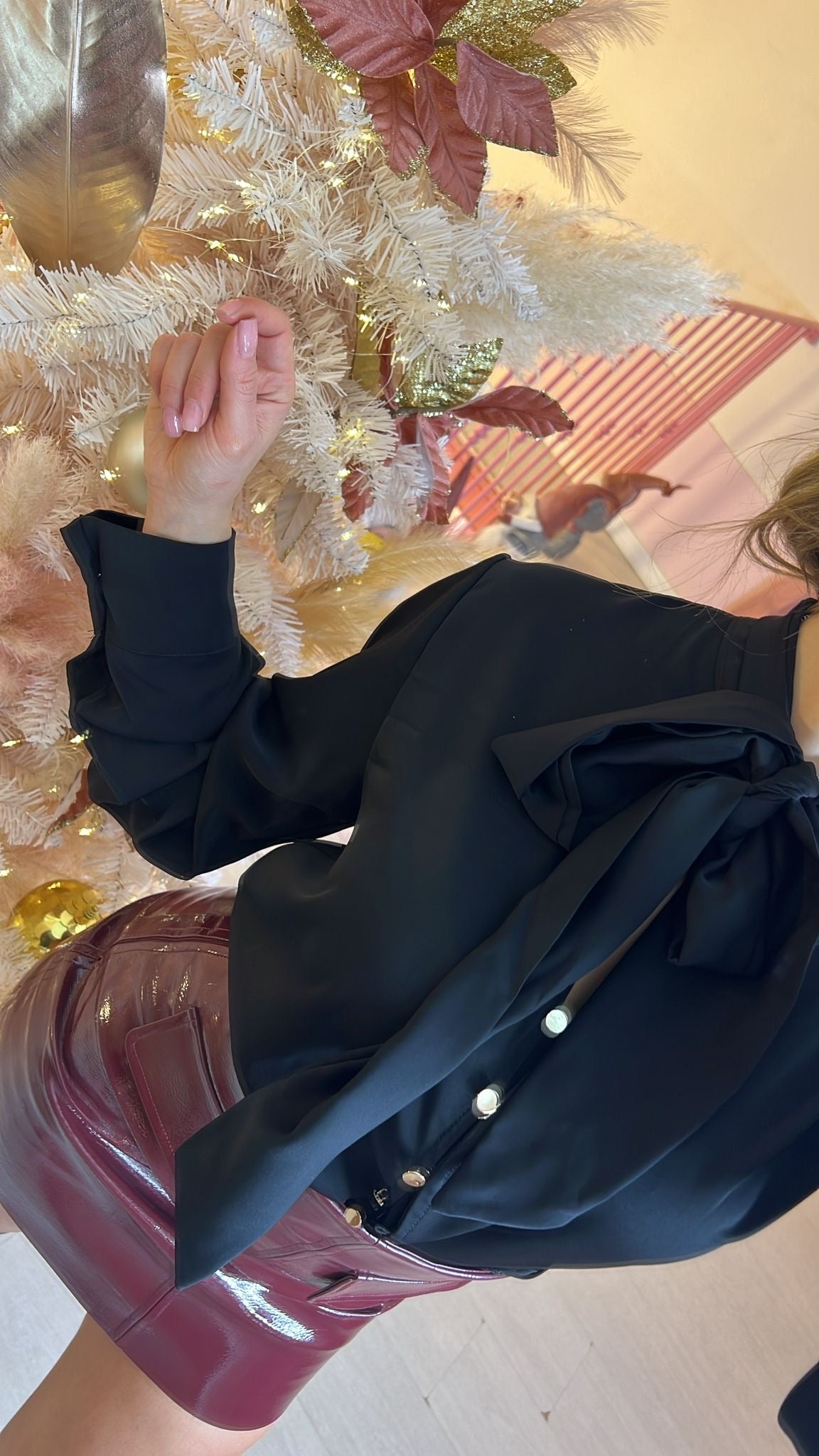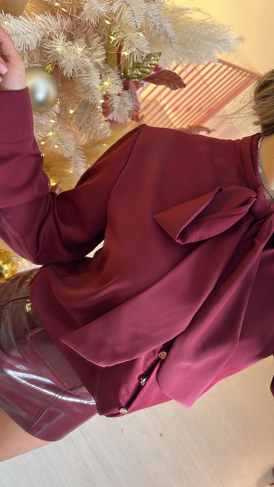 Camicetta cropped manica a palloncino dettaglio fiocco foulard