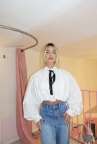 Camicetta cropped manica a palloncino dettaglio fiocco foulard