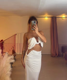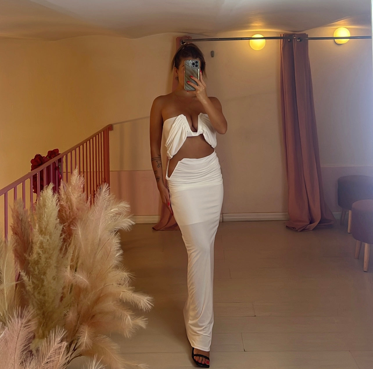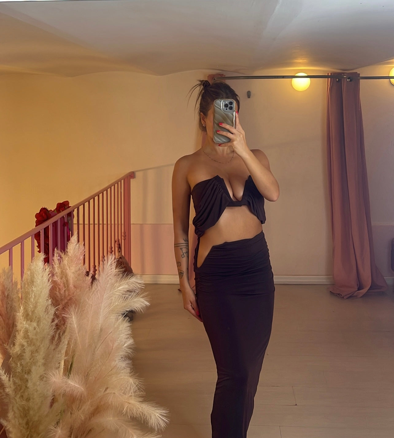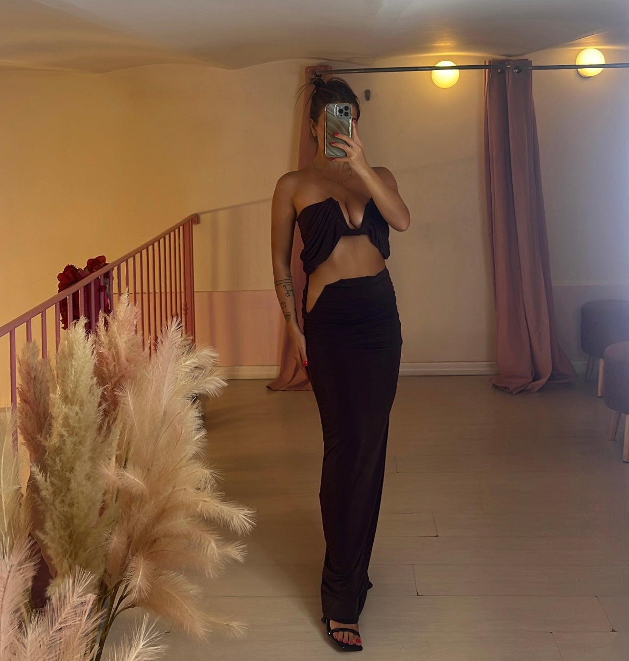 Coordinato top fascia con scollo a V rigido e gonna longuette con spacco laterale alto scollo V