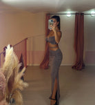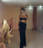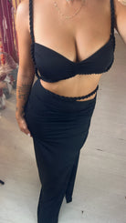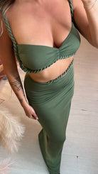 Coordinato composto da top a balconcino dettaglio treccia e gonna longuette