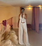 Top con lacci al collo e coulisse parte avanti