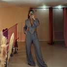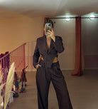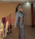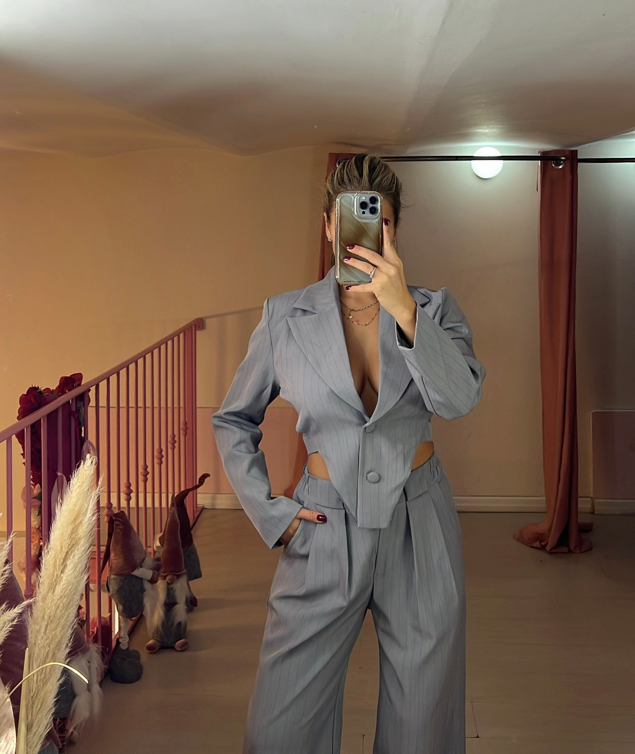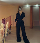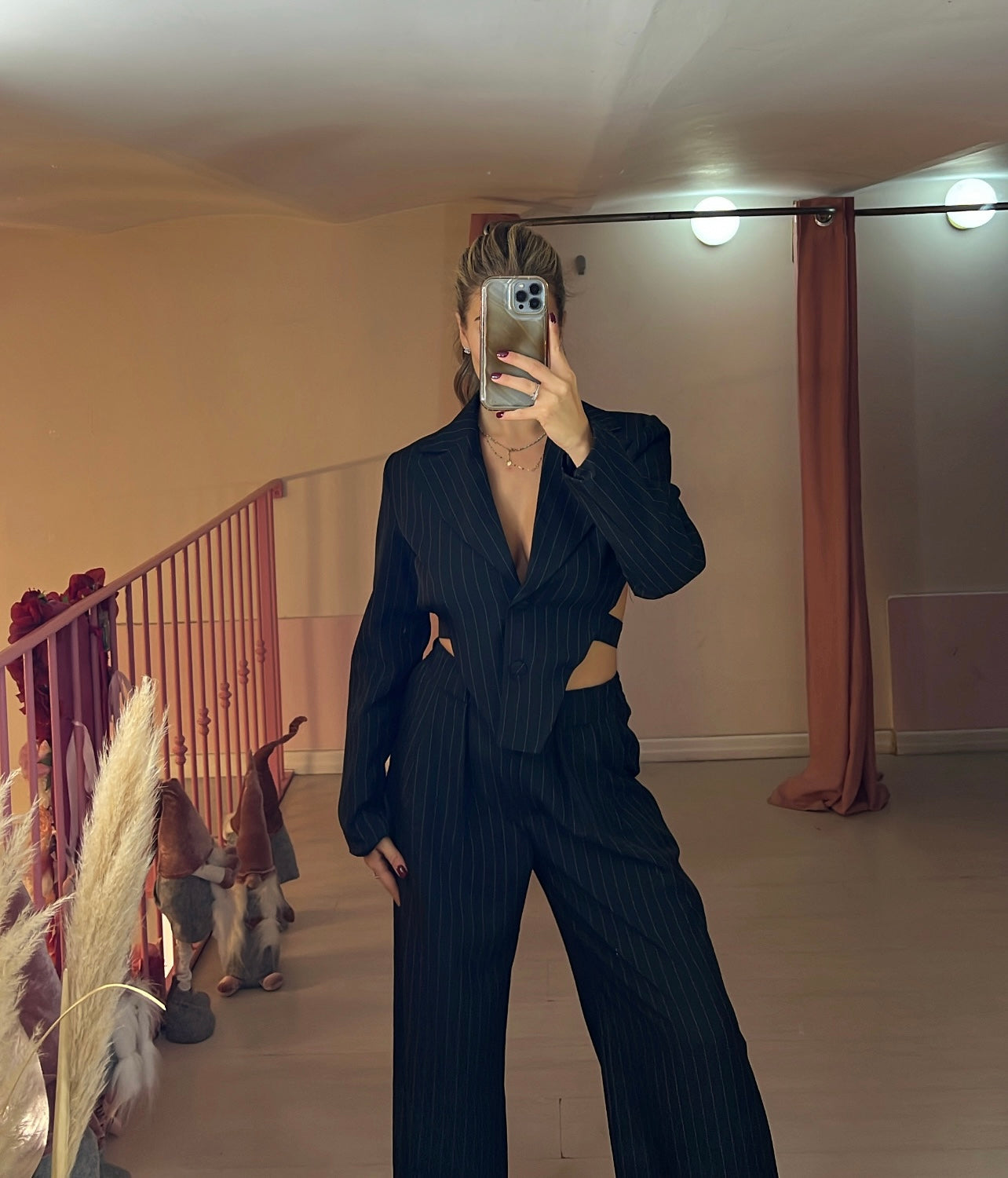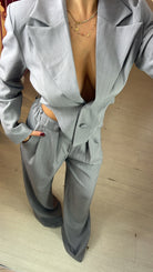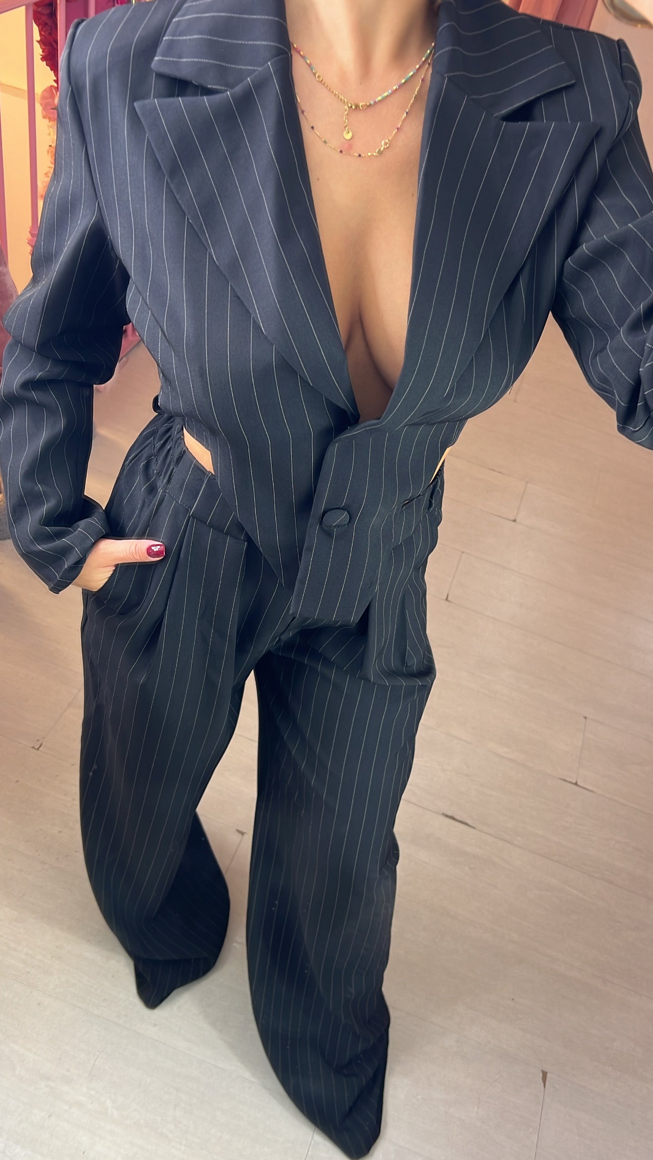 Giacca taglio asimmetrico e scollo a V con colletto revers e spallina imbottita