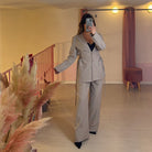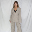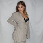 Blazer avvitato con stringhe e lacci sui fianchi + pantalone con elastico a palazzo.