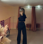 La modella è alta 1.65cm , il coordinato calza da una xs a una L