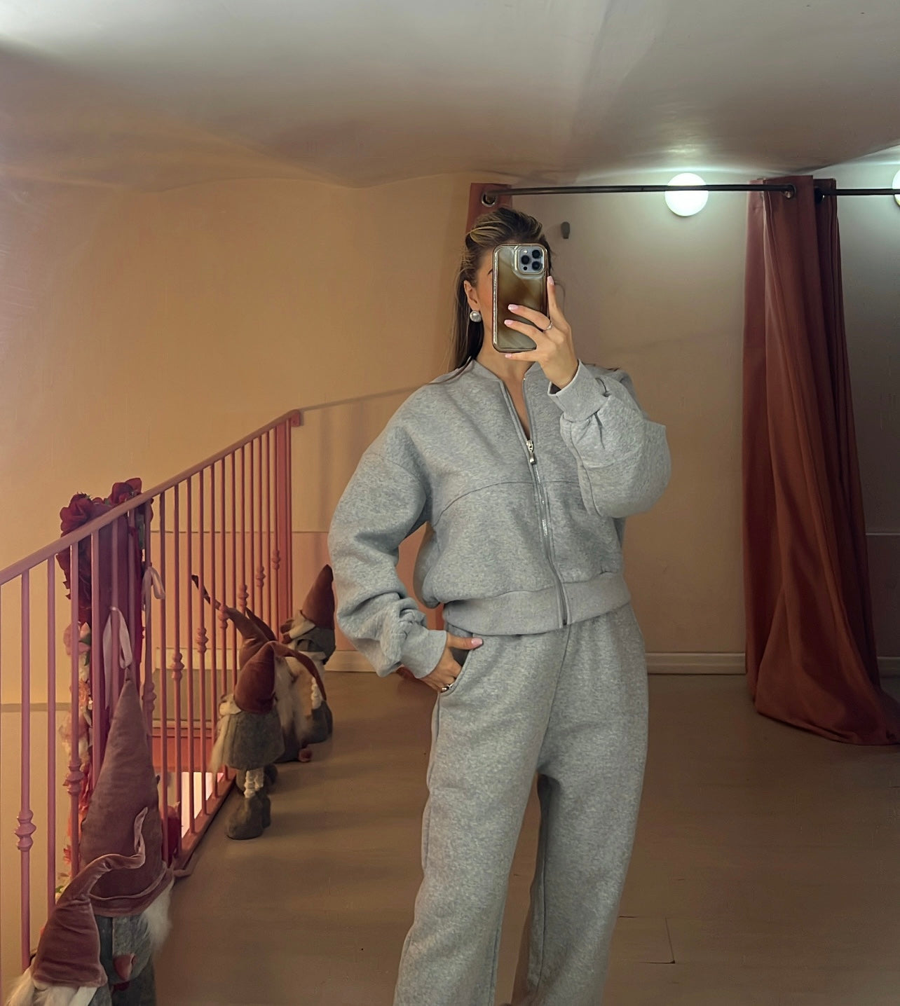 Felpa con zip frontale, in tessuto caldo cotone (80%)