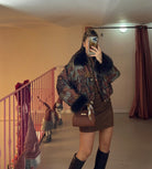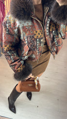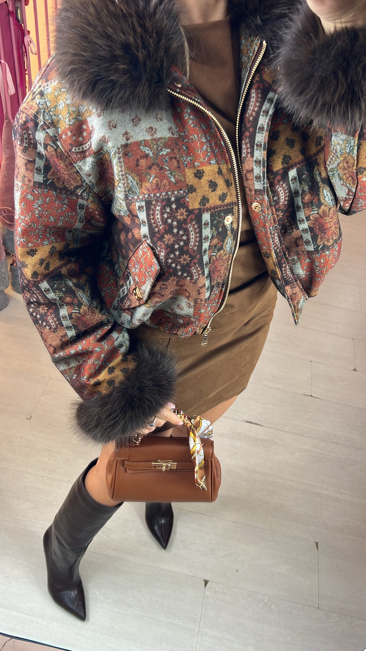 Bomber  multicolore  in fantasia paisley con  interno e collo in pelliccia.
