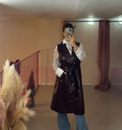 Smanicato medio-lungo in ecopelle con cintina in vita