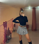Gonna in pied de poule bianca e nera a pieghe con doppia cintina sulla vita.