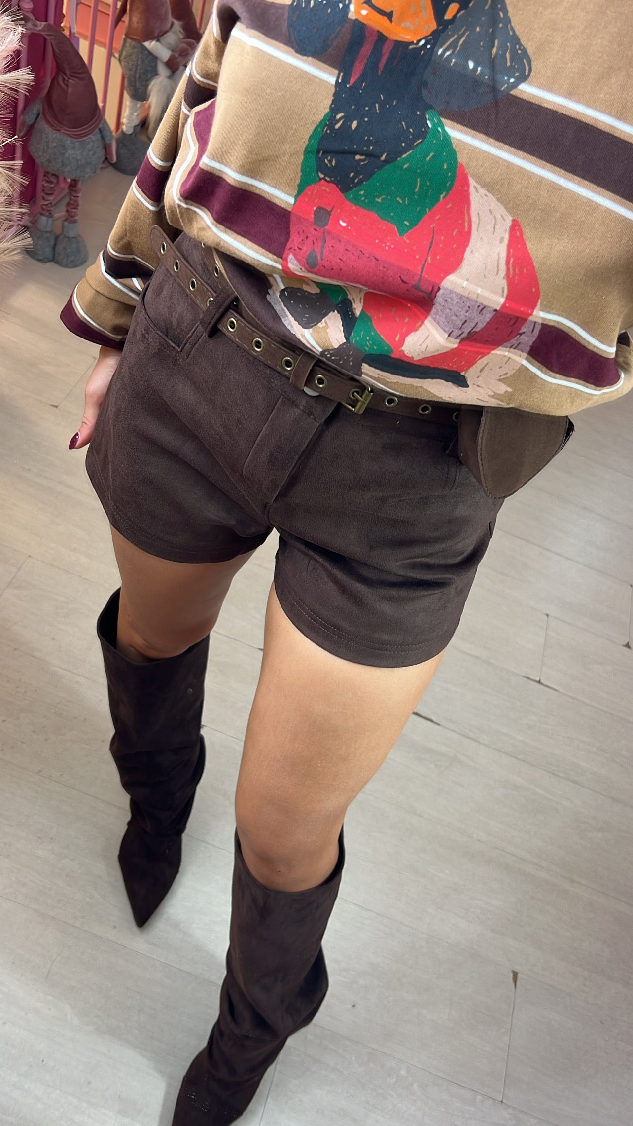 Shorts in camoscio, dettaglio cintina con Borsellino