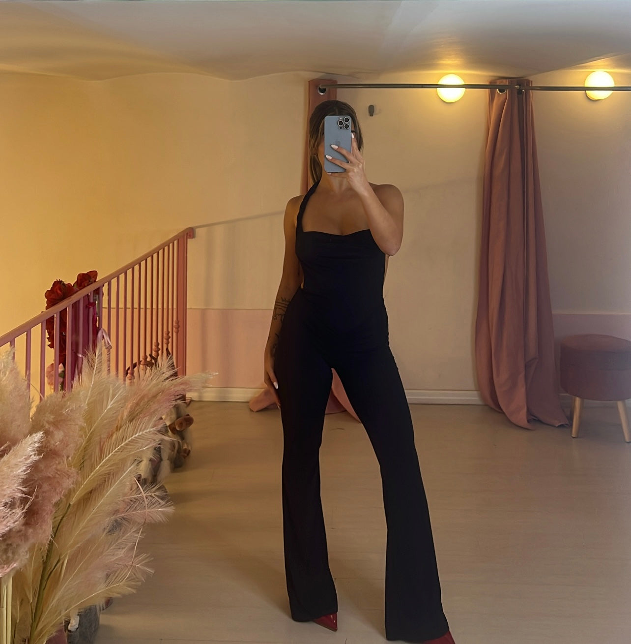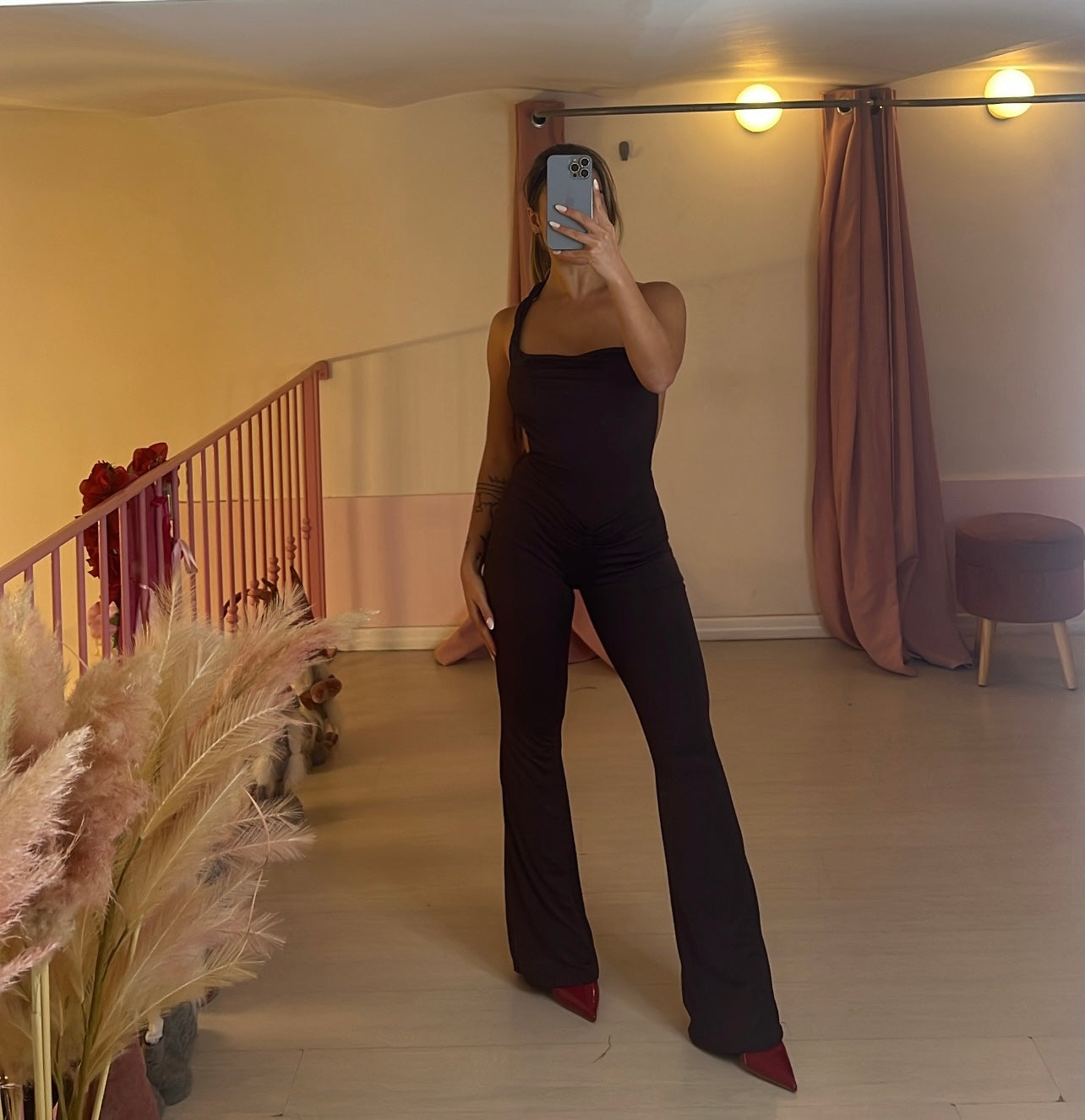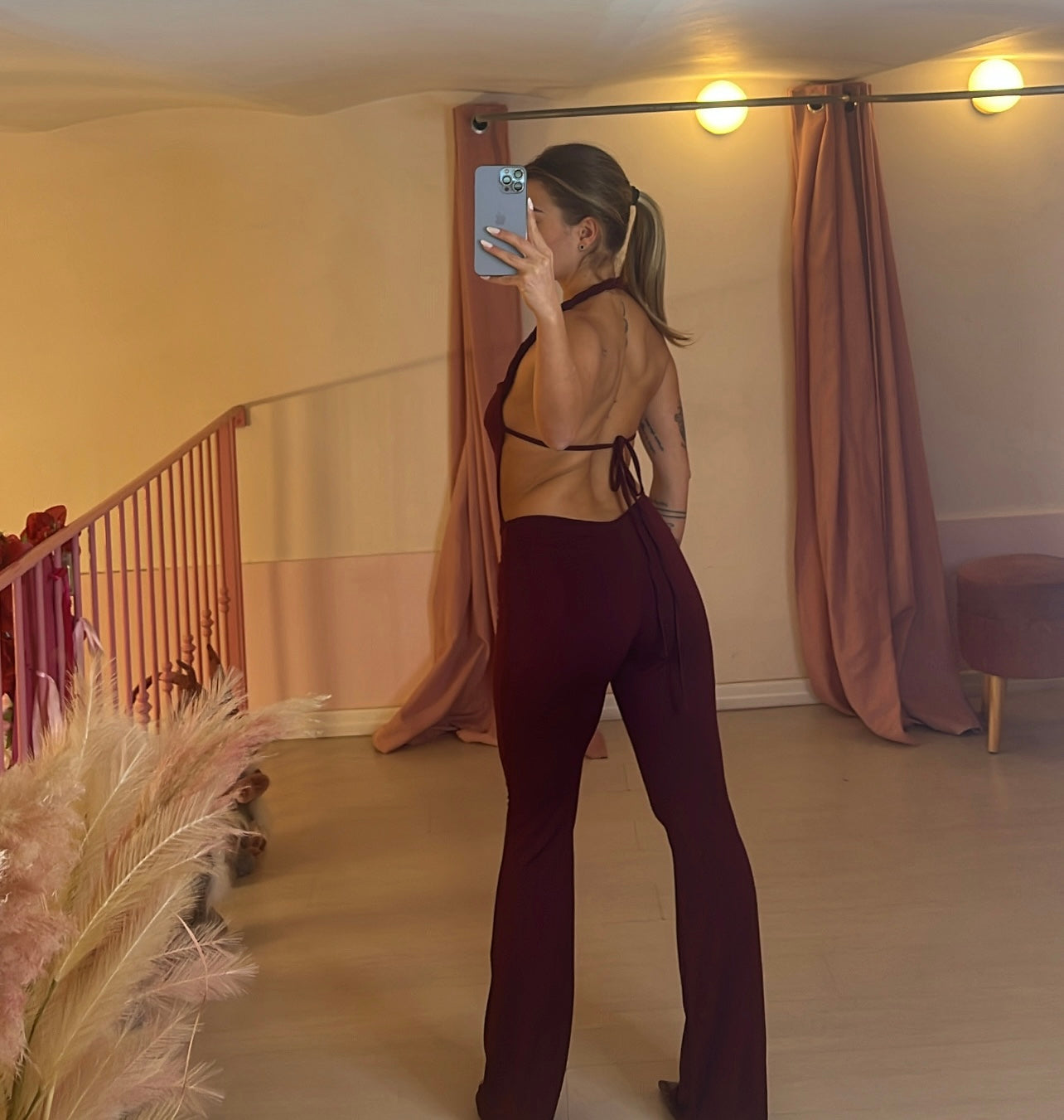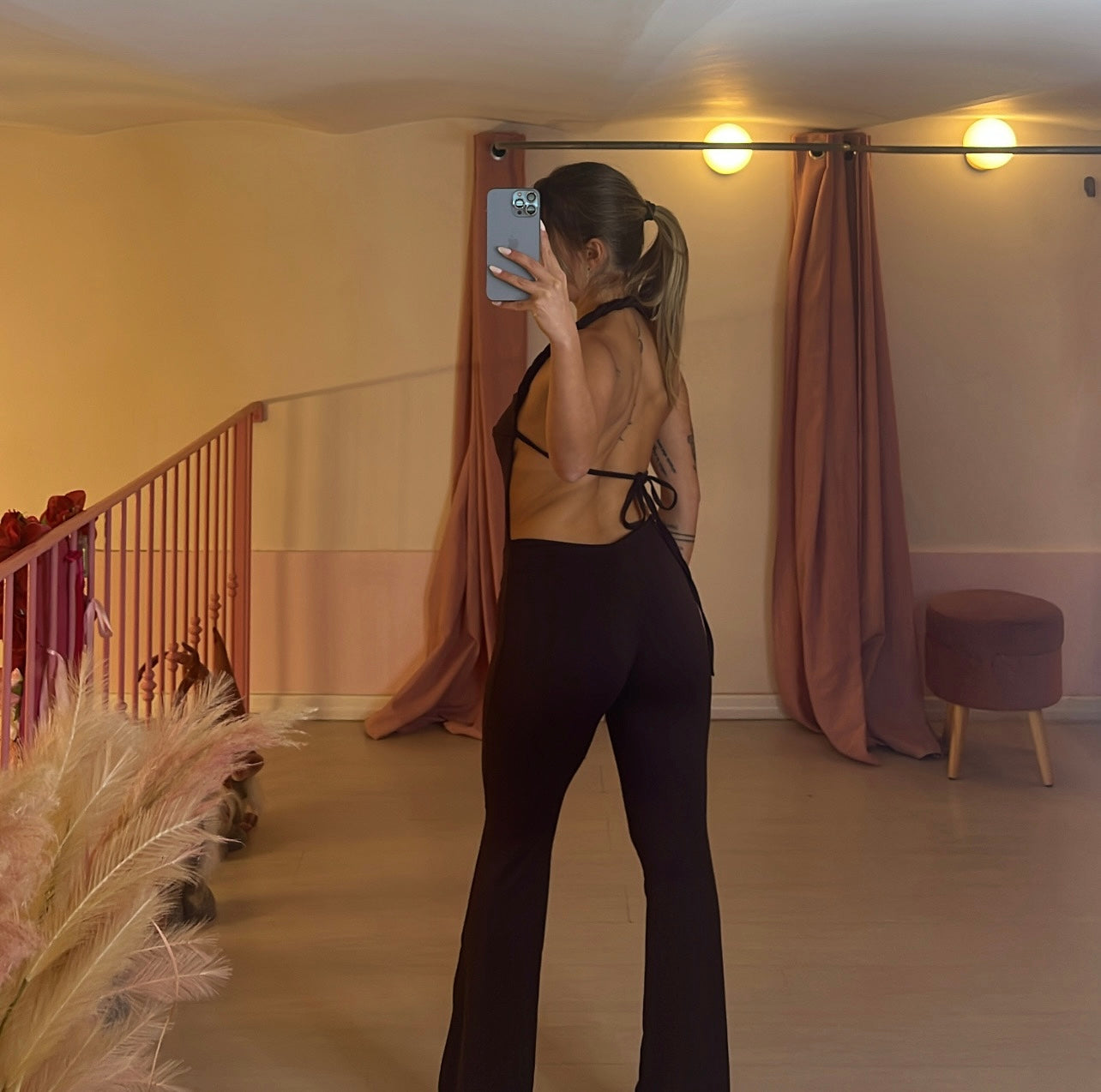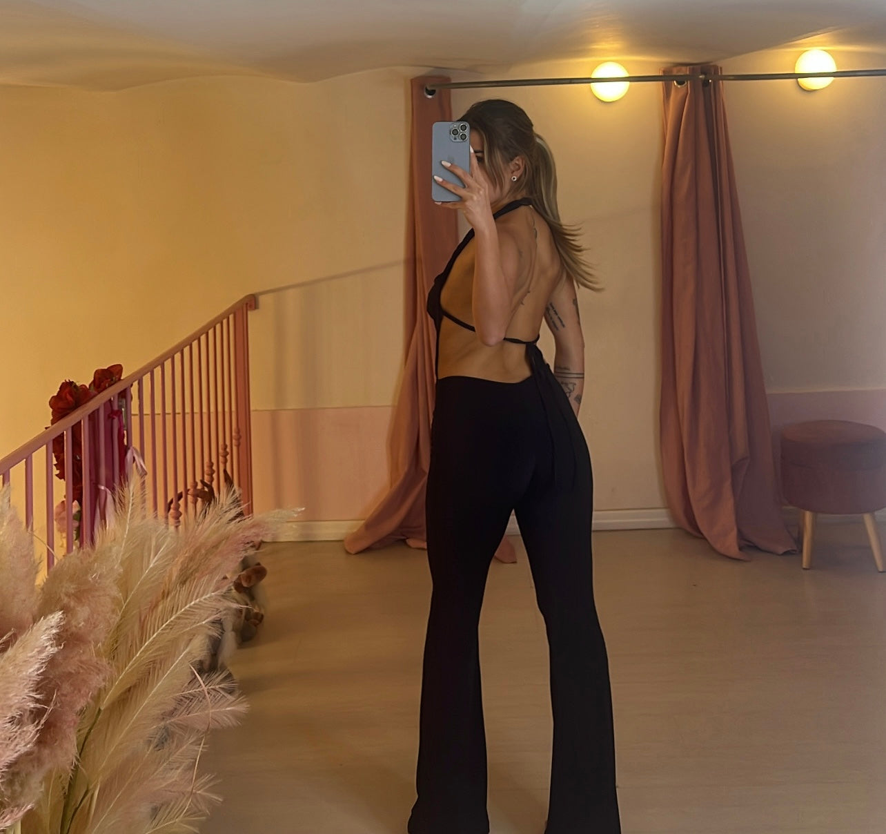 Tutina intera smanicata con aperture davanti e dettagli in oro