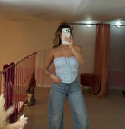 Corpetto in pizzo floreale con arricciatura lacci ad incrocio nella parte davanti.