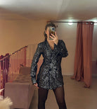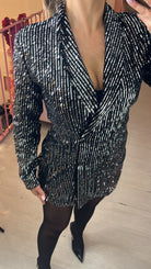 Giacca in paillettes a doppio petto, indossabile anche come vestito. Taglia unica veste fino alla L.