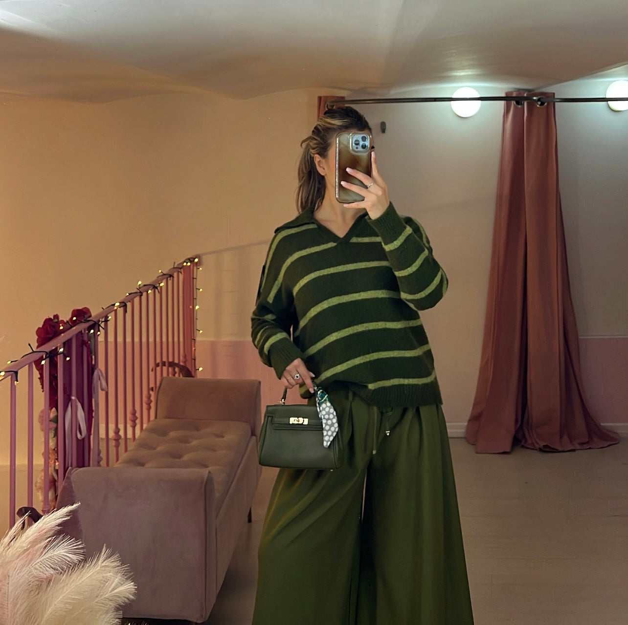 Polo in maglia green a righe .