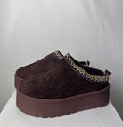 Ciabatta scamosciata con suola platfrom stile ugg con bordo ricamato