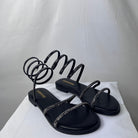 Sandalo basso con cinturino giro caviglia a spirale swarovski nero.
