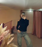 Maglia mezzo collo con risvolto spalle scoperte