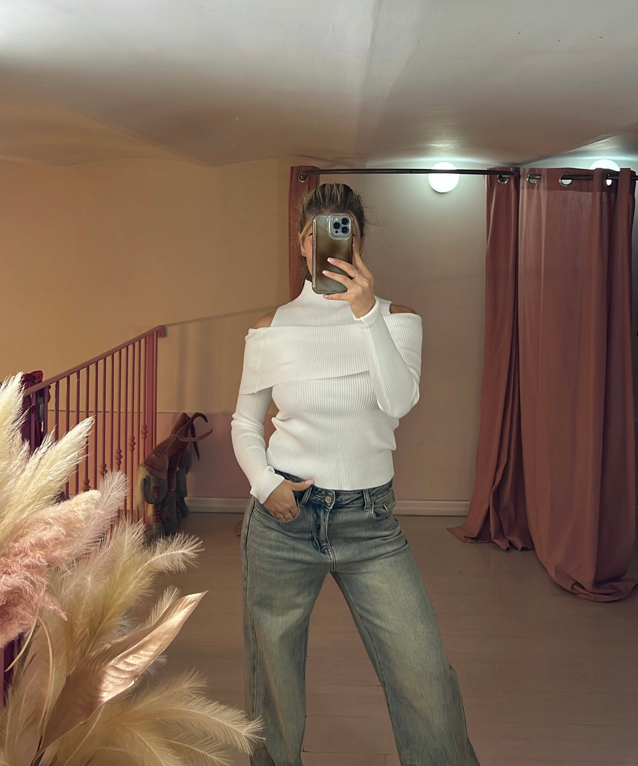 Maglia a costine spalle scoperte