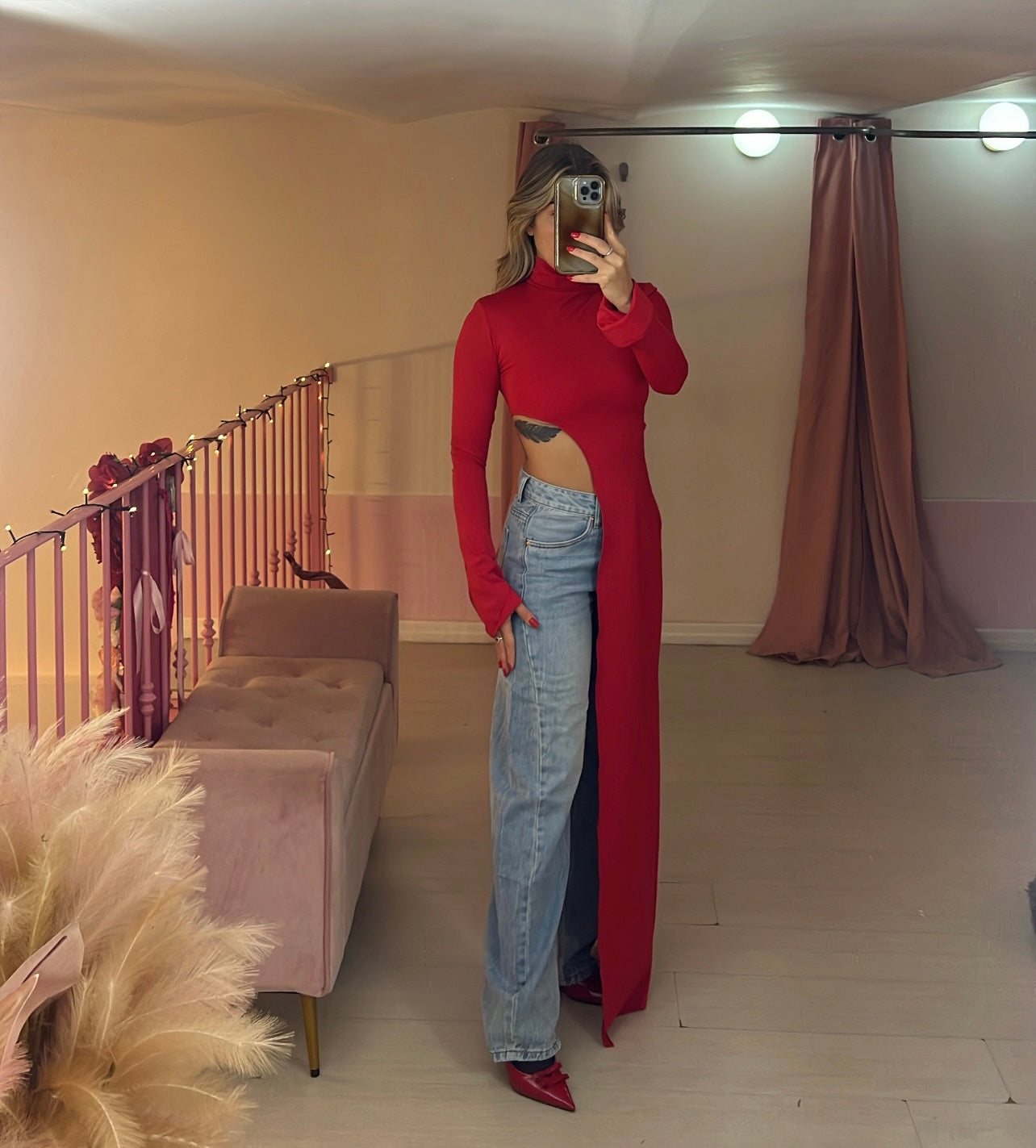 Maglia manica lunga Con spalline imbottite e taglio asimmetrico sulla lunghezza