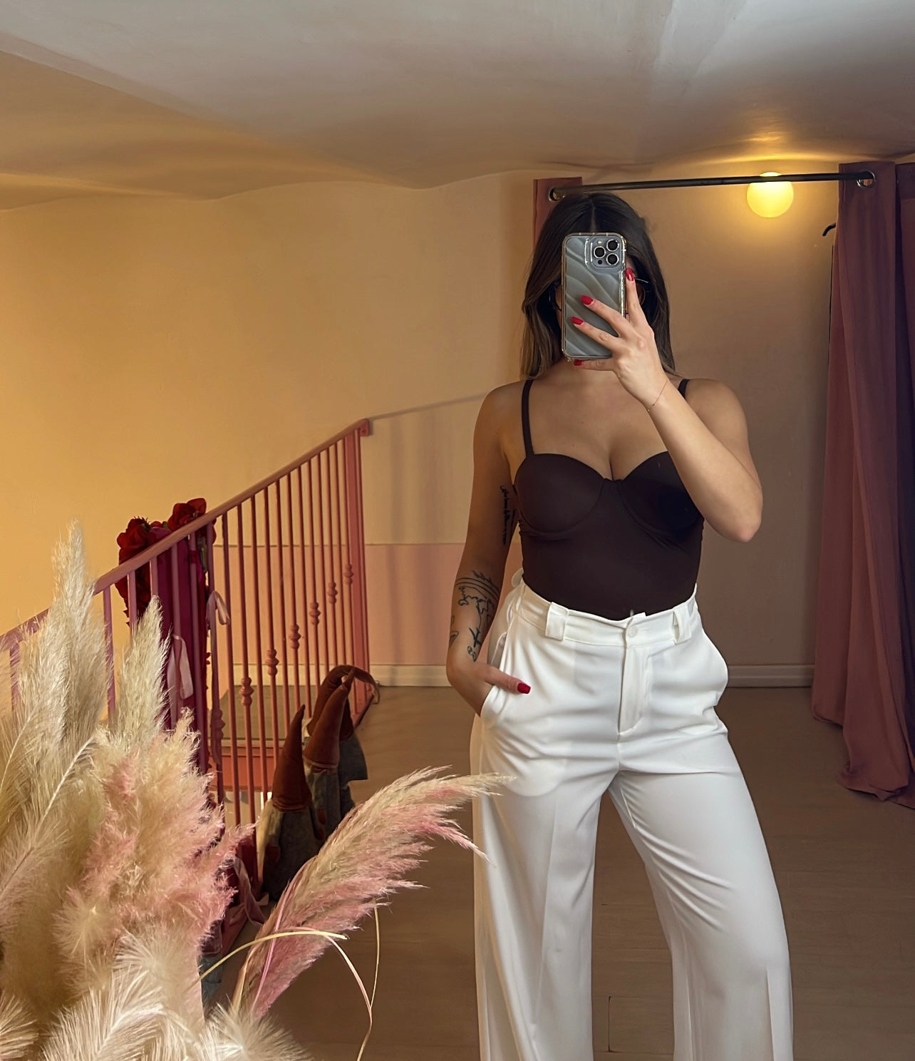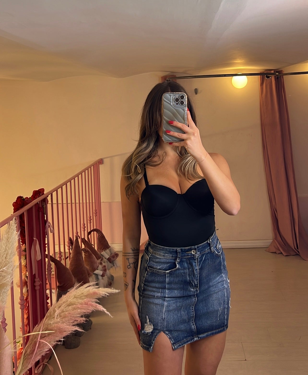 Body effetto modellante con coppa e ferretto. Spalline regolabili e removibili.