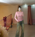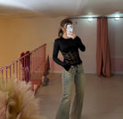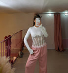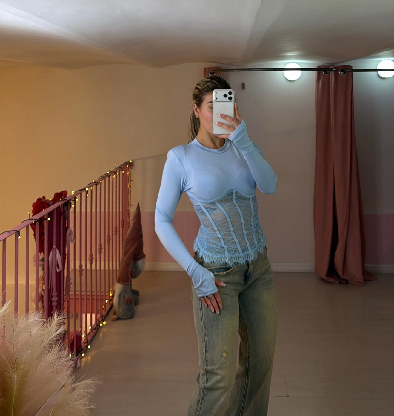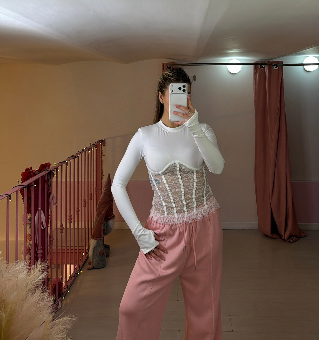 Top in Tessuto elasticizzato nella parte superiore con corpetto in pizzo nella parte di sotto.