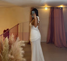 Abito lungo con scollo U rigido e banda fascia cadente nella parte avanti