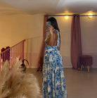 Abito fantasia fiorata in tessuto elasticizzato con scollo a V e scollatura schiena
