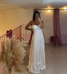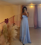 Abito con gonna lunga e con coppa preformata e bretellina lacci regolabile