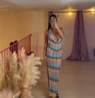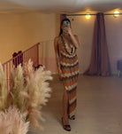 Abito lungo trapuntato in maglia con scollo halter nella parte anteriore e scollo schiena