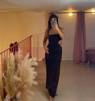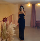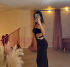 Abito lungo a fascia con mezzaluna cutout dettaglio gioiello
