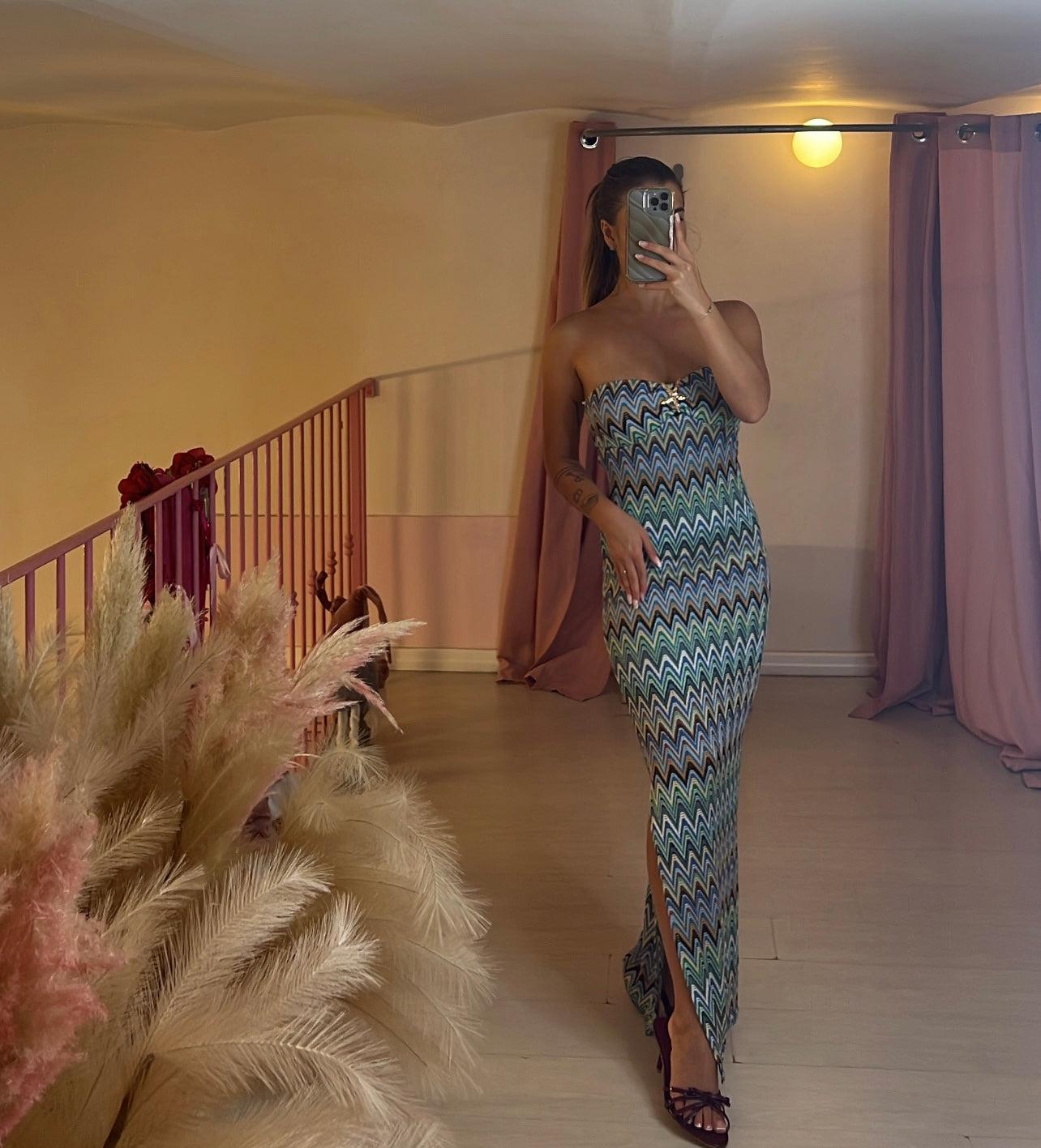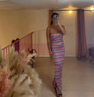 Abito longuette a fascia uncinetto multicolor con dettaglio stella marina