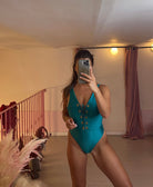 Bikini intero con lacci ad incrocio nella parte avanti e mutanda brasiliana nella parte di sotto