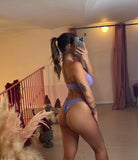 Bikini a fasca con dettaglio rosa rimovibile e slip brasiliana