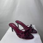 Ciabattina con tacco a spillo dettaglio fiocchetto colore bordeaux.