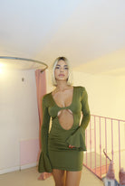 Vestito con spacco cut out e manica con rouche